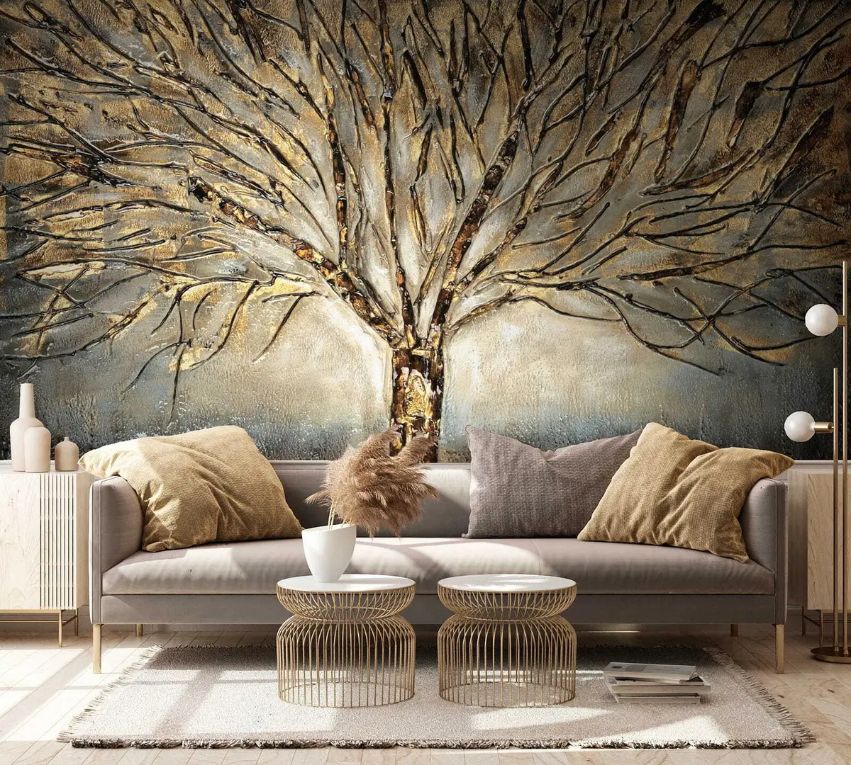 Zidne murale Širenje stabla u smeđim nijansama br. u07184
