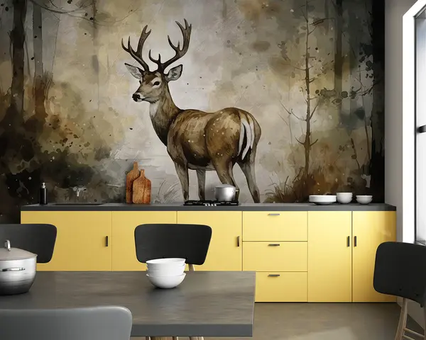 Zidne murale Ručno nacrtani jelen u šumi br. u95410