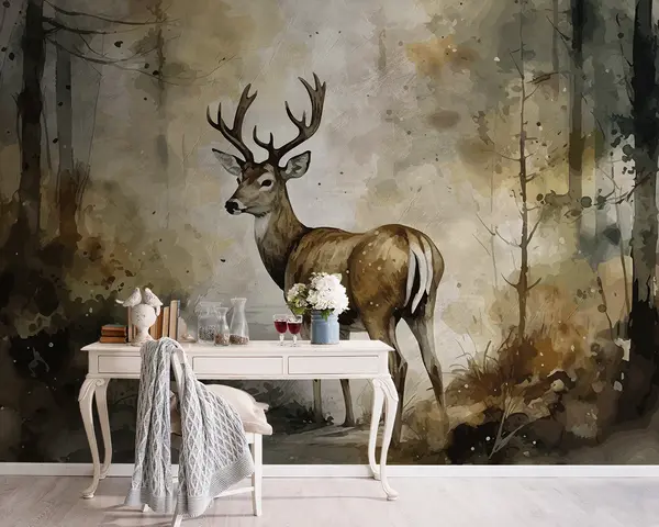 Zidne murale Ručno nacrtani jelen u šumi br. u95410