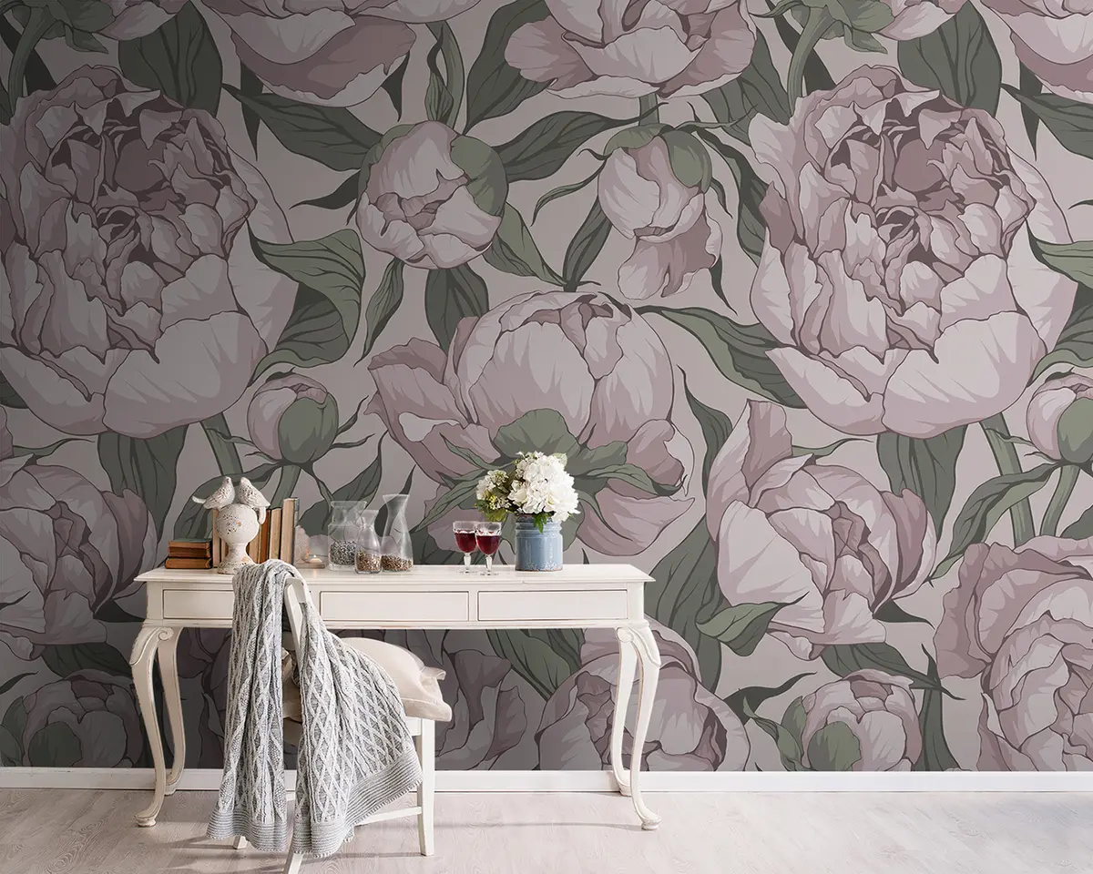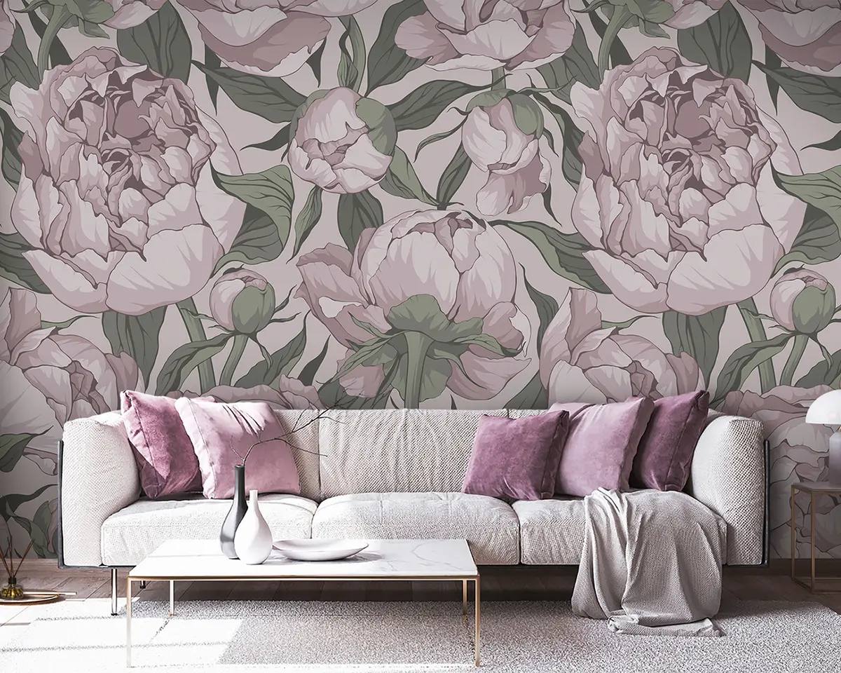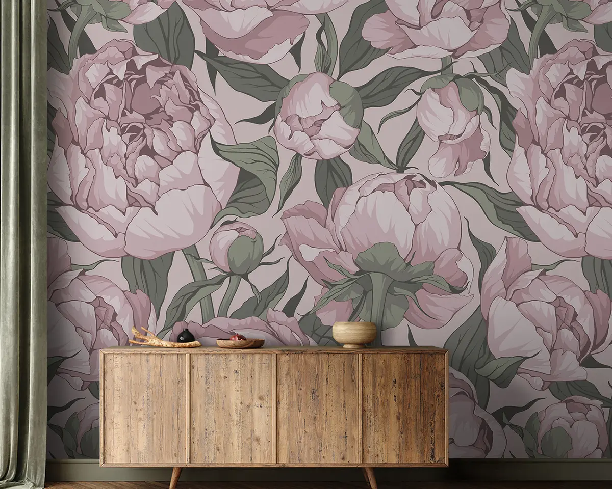 zidne murale Cvjetaju božuri u pastelnim bojama u95849