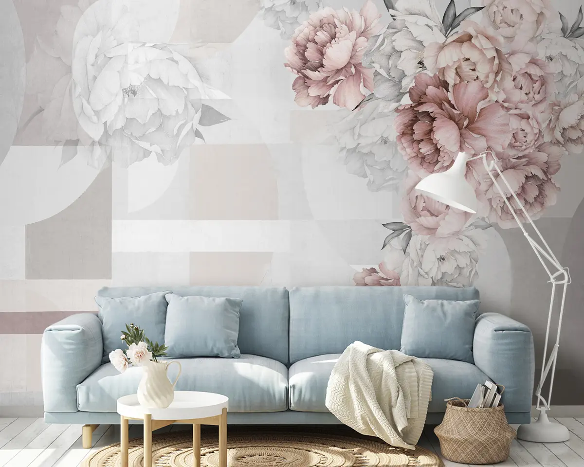 zidne murale Akvarelni božuri u ružičastoj boji s geometrijskom pozadinom u95855