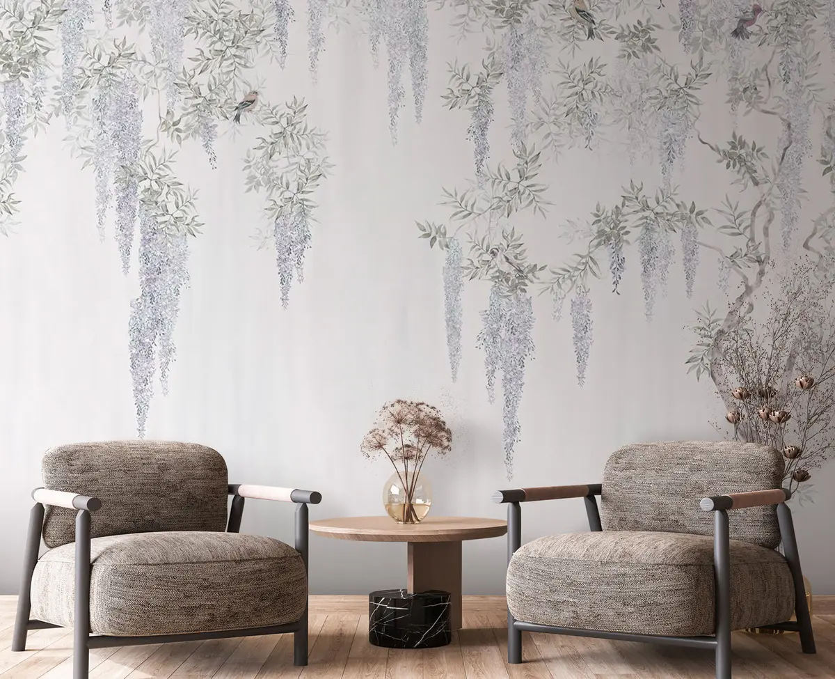 Zidne murale Cvjetovi glicinije, glicinije, minimalizma, jednobojnog, potkrovlja i japanskog stila br. u96928