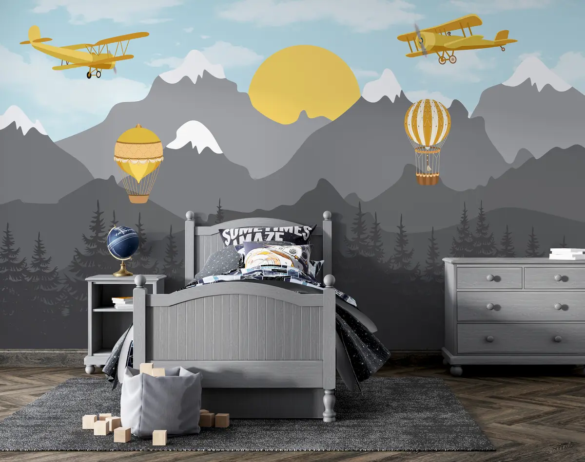 Zidne murale Planine, šume i avioni na nebu br. u94821