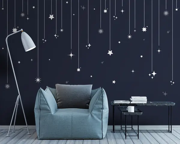 Zidne murale Zvijezde padalice Bijela boja, Elegantni minimalistički uzorak, Svemirska tema br. u98767v1