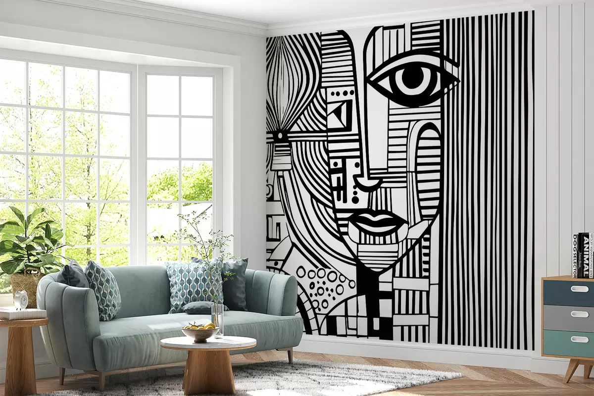 Zidne murale Crno-bijelo apstraktno lice br. u98714