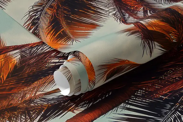 Zidne murale Zalazak sunca na plaži, velike palme br. u97883