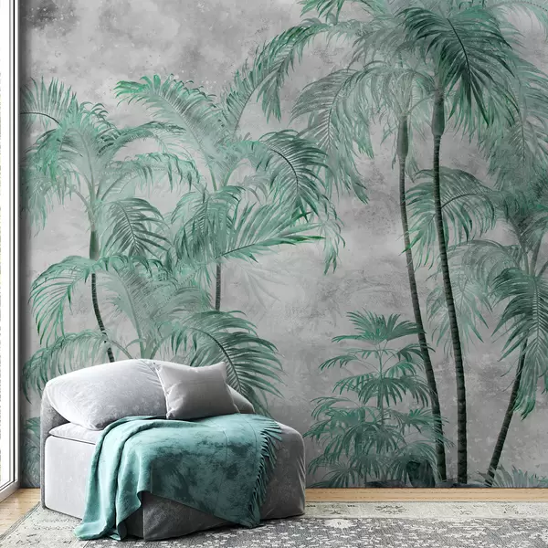 Zidne murale Tropske palme na betonskom zidu br. u98586v1