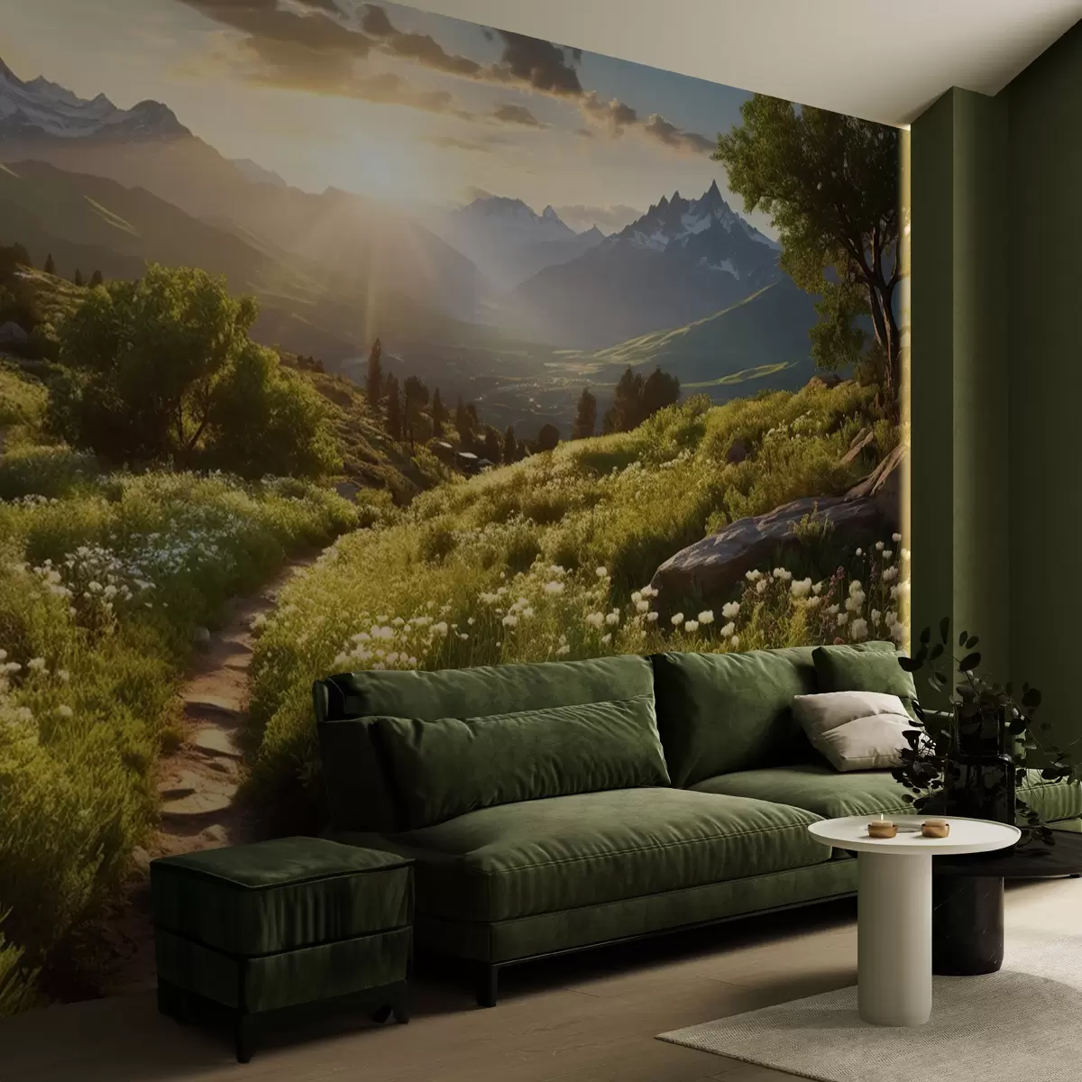 Zidne murale Planinski krajolik zalazak sunca br. u96209
