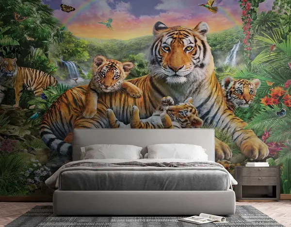 Zidne murale Bengalski tigar, sibirski tigar i biljka br. u18516
