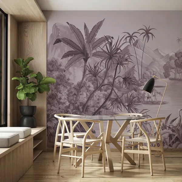 zidne murale Crno-bijeli tropi u ljubičastim bojama u59040v3