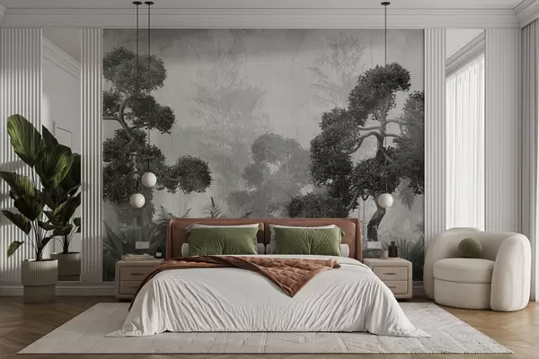 zidne murale Tropsko drveće i lišće u maglovitoj šumi u95901
