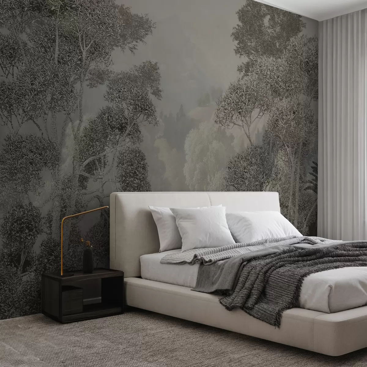 Zidne murale Tropska šuma u sivim tonovima br. u97396