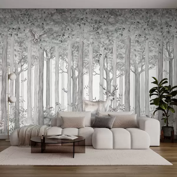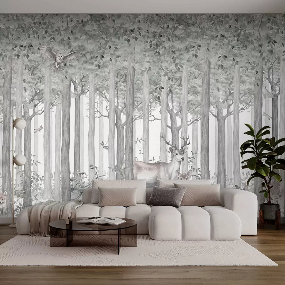 Zidne murale Šumske životinje jelen i siva sova br. u97629v1