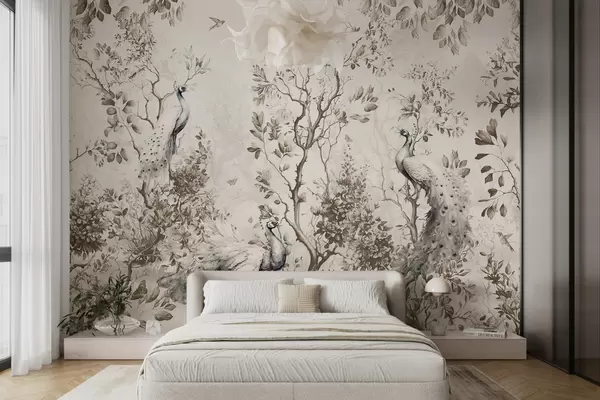 Zidne murale Vrt s krhkim pticama, paunovima br. u94850
