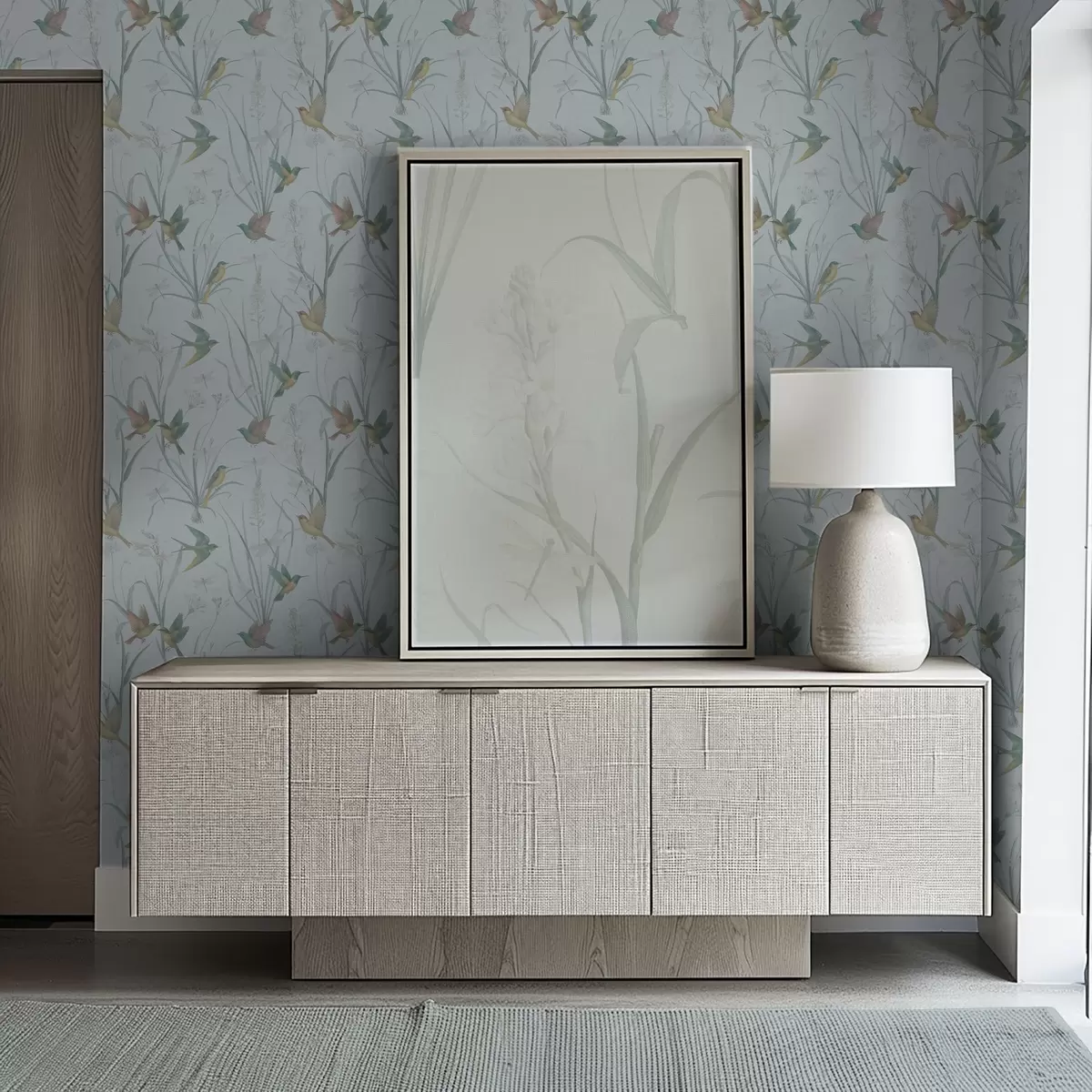 Tapeta Ptice među livadnim travama na sivoplavom tlu br. a00776