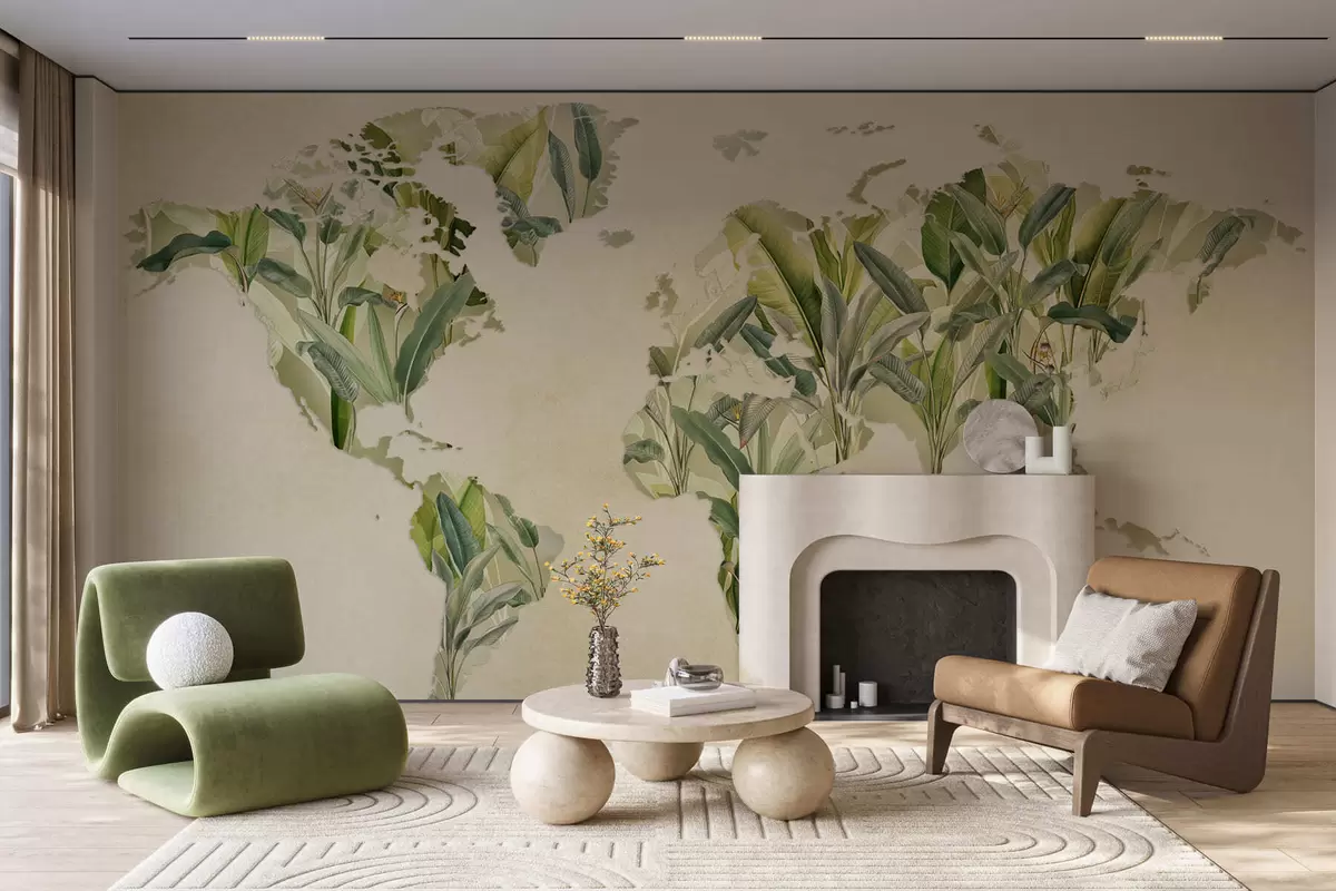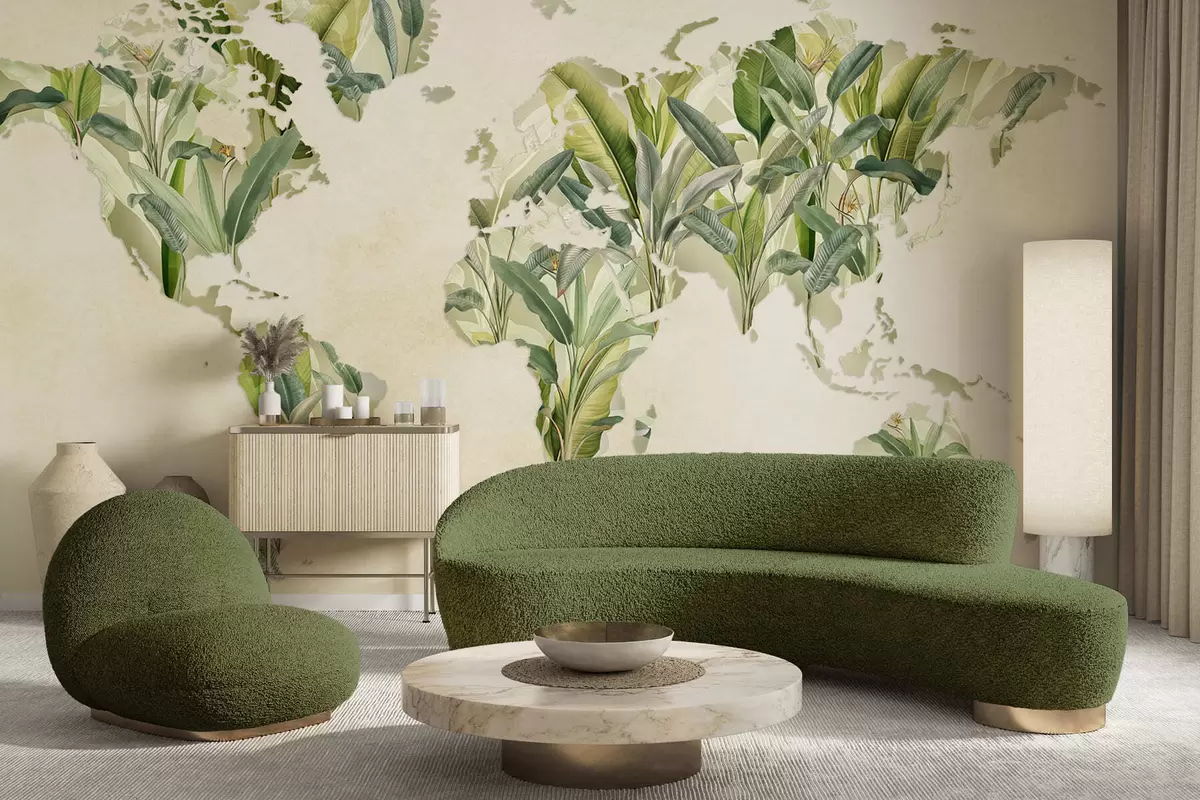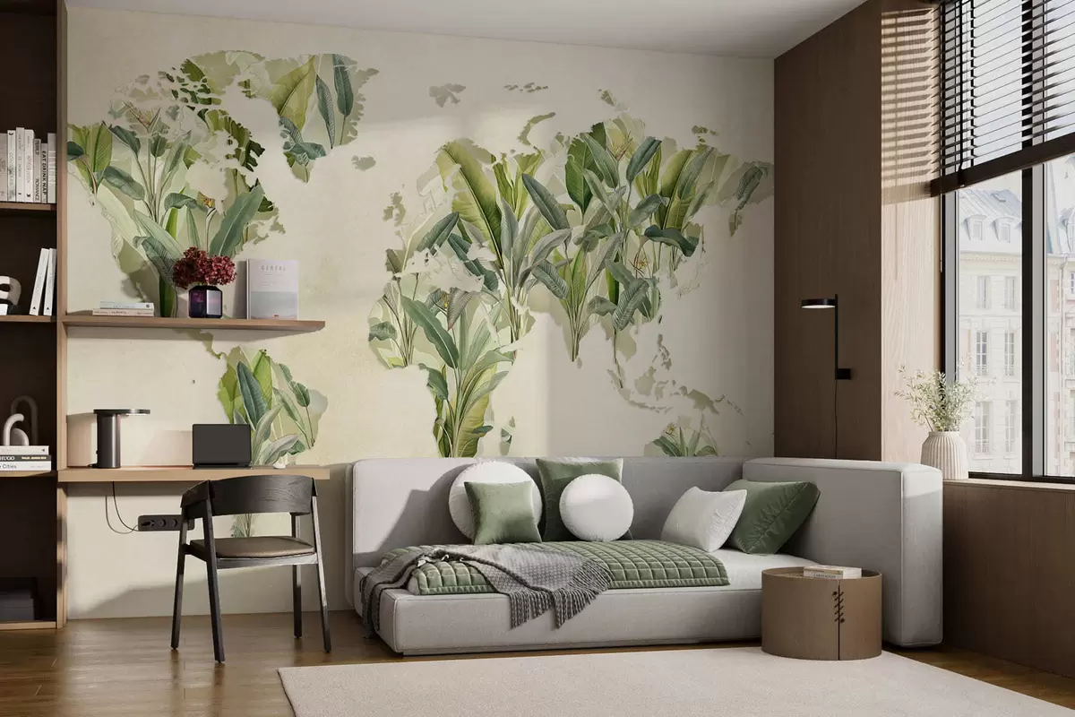 Zidne murale Zelena karta svijeta napravljena od listova banane br. c00007