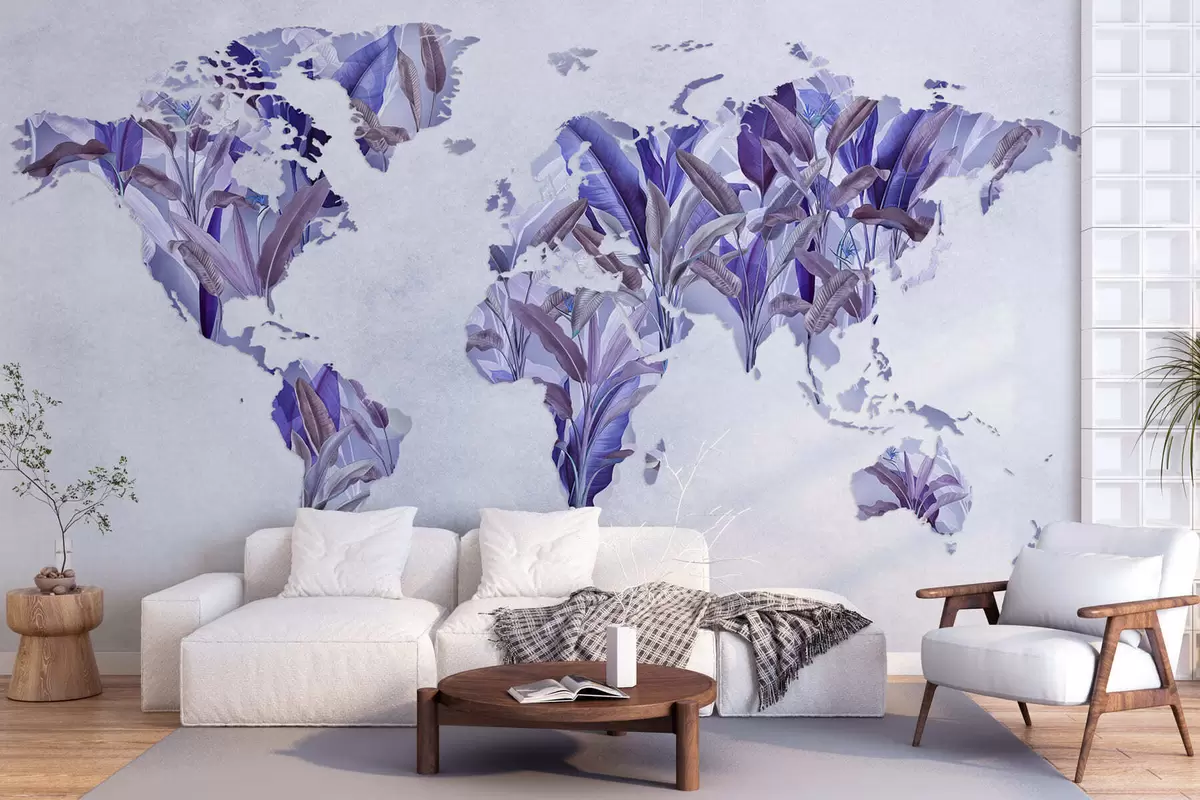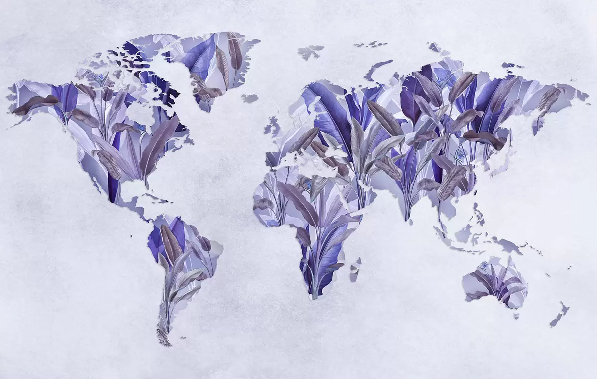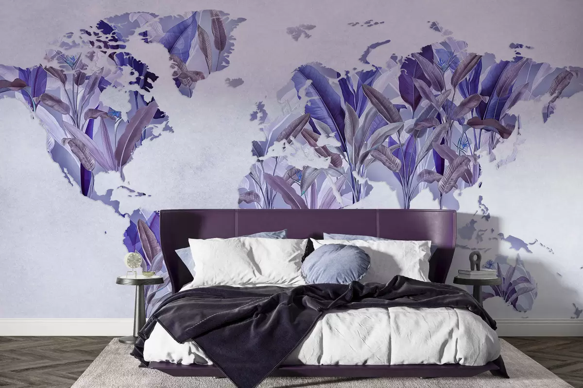 Zidne murale Ljubičasta karta svijeta napravljena od listova banane br. c00007v1
