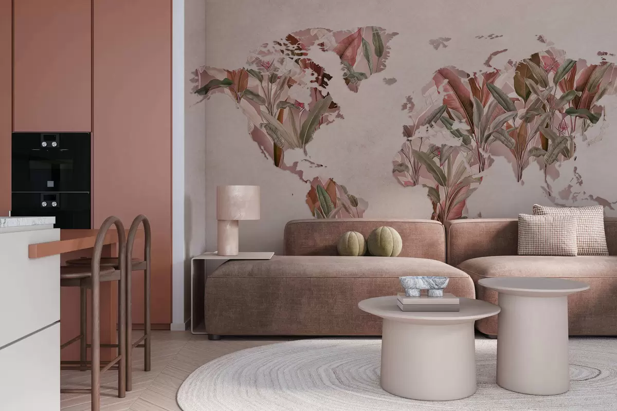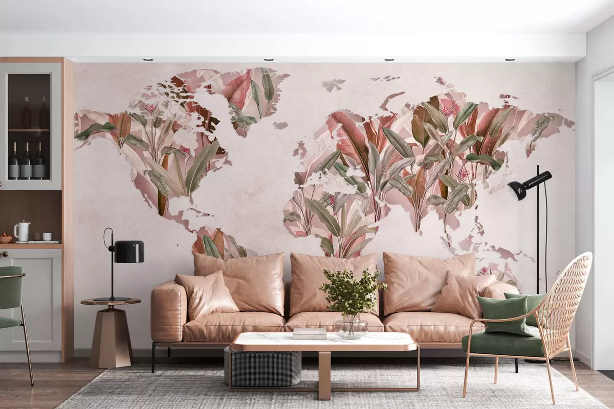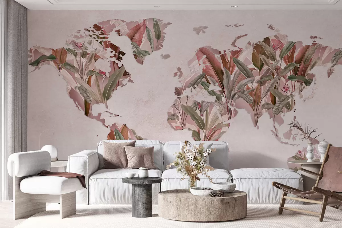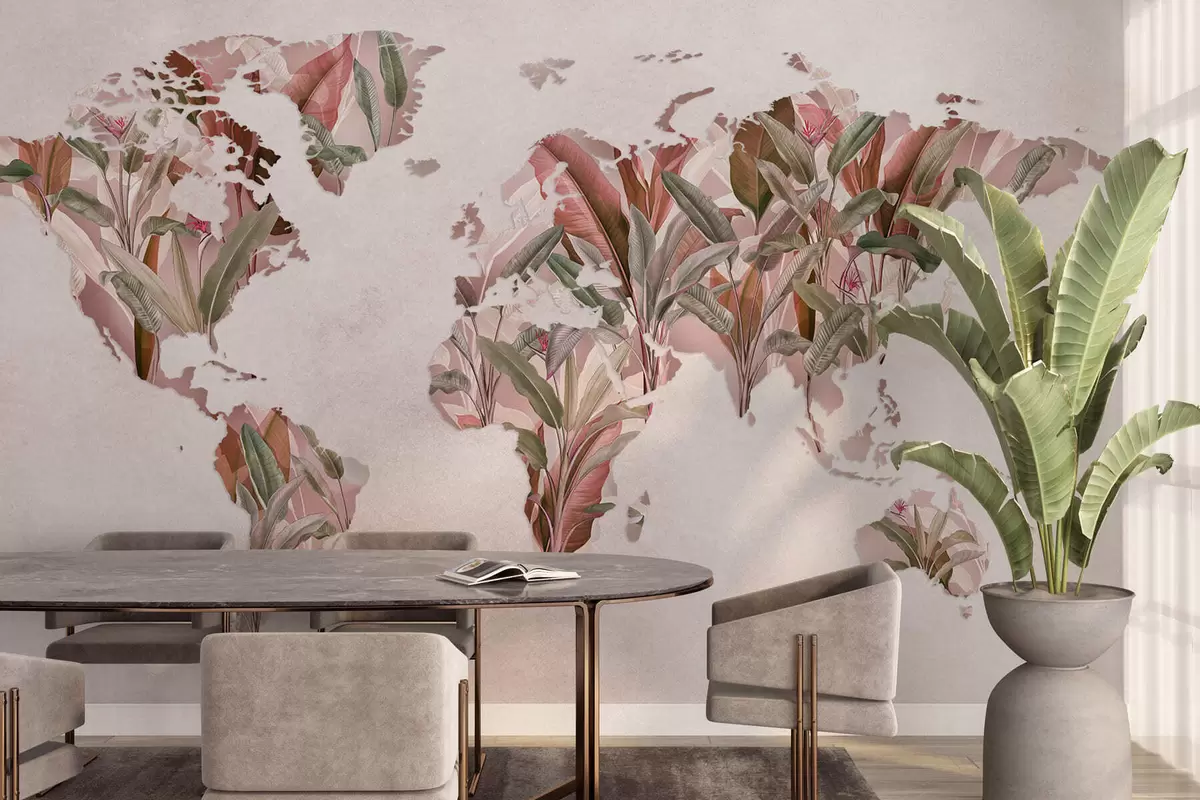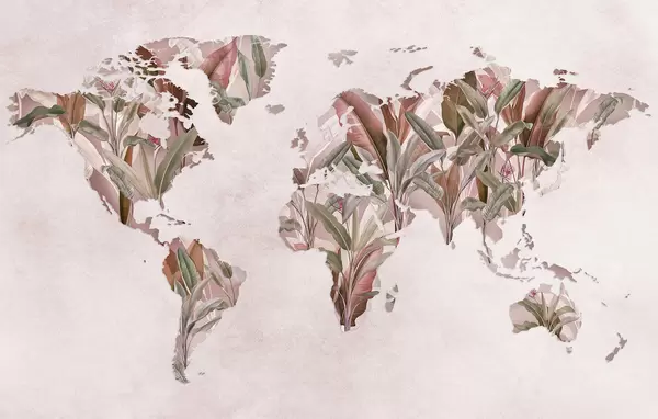 Zidne murale Ružičasta karta svijeta napravljena od listova banane br. c00007v2