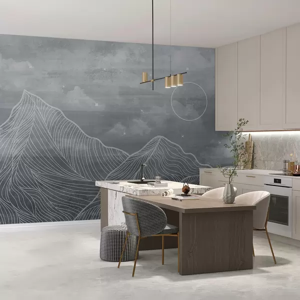 Zidne murale Grunge tekstura s oblacima i planinama, siva boja, umjetnost na temu prirode br. u98838v1