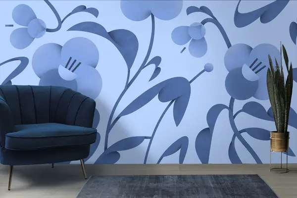 Zidne murale Botanički print s ukrasnim plavim cvjetovima br. u99196v8