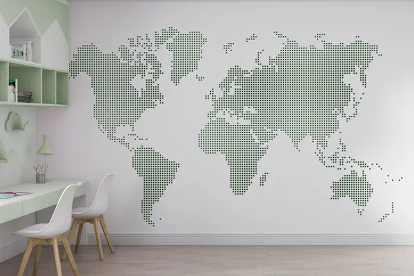 Zidne murale Karta svijeta sa zelenim kvadratnim točkama br. u99406v2