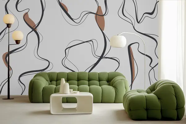 Zidne murale Umjetnost crtanja tušem, apstraktni uzorak, geometrijske linije, siva i narančasta br. u99659v3