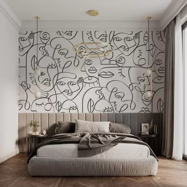 Zidne murale Apstraktna lica u zamršenoj liniji br. w00131
