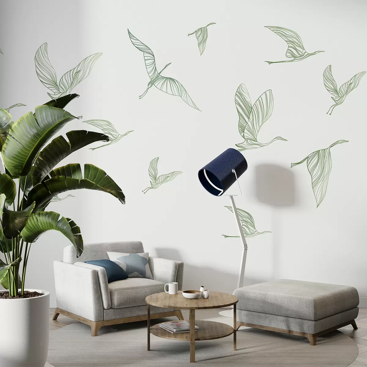 Zidne murale Linija ptica koje lete, minimalizam, priroda, zelene boje br. w00758v2