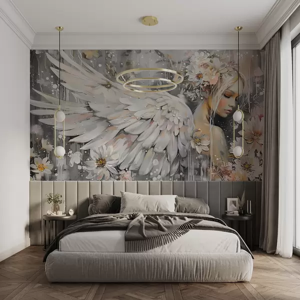 Zidne murale Anđeo djevojka na sivoj pozadini oslikana uljem br. w00761