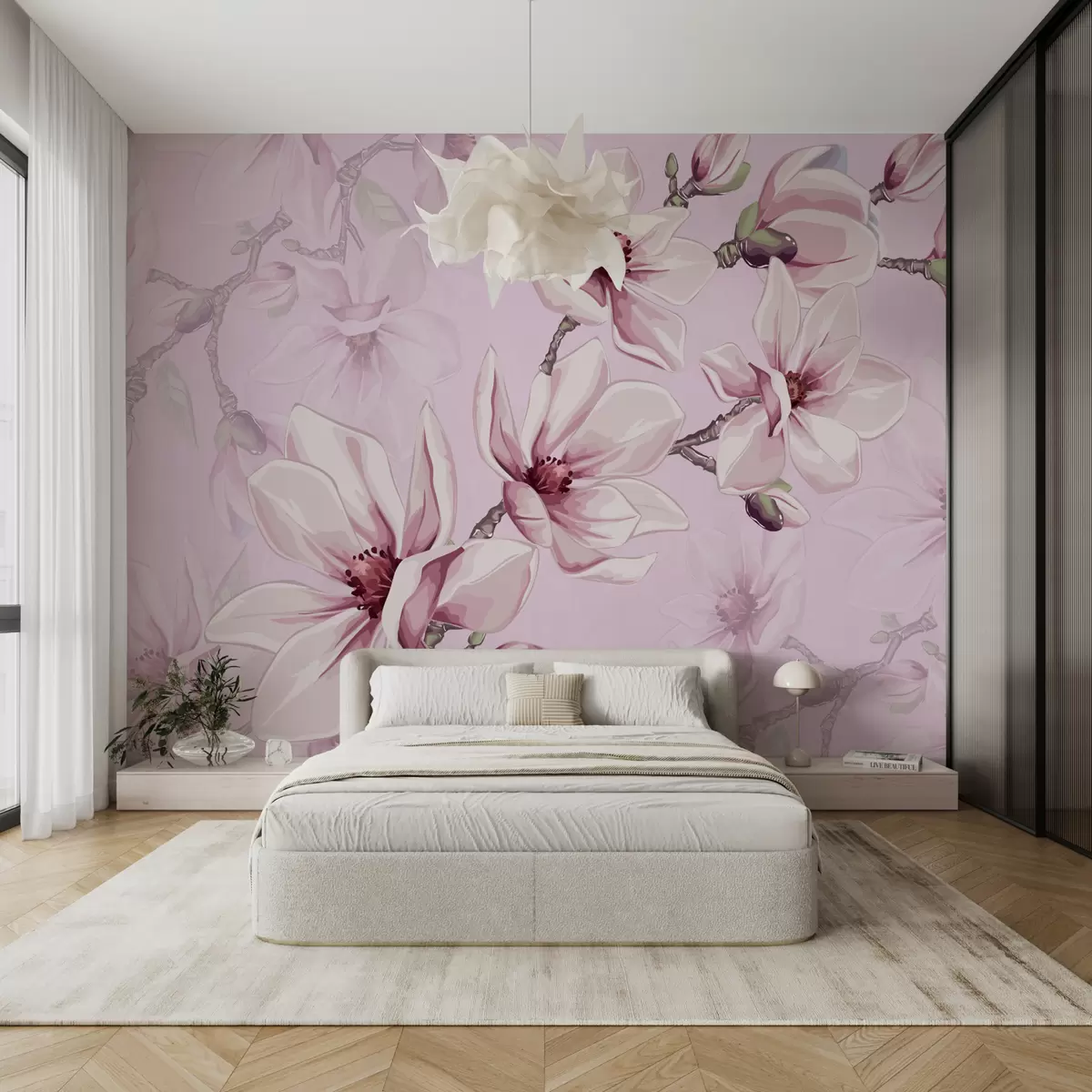 Zidne murale nježna ružičasta magnolija izbliza br. w00982