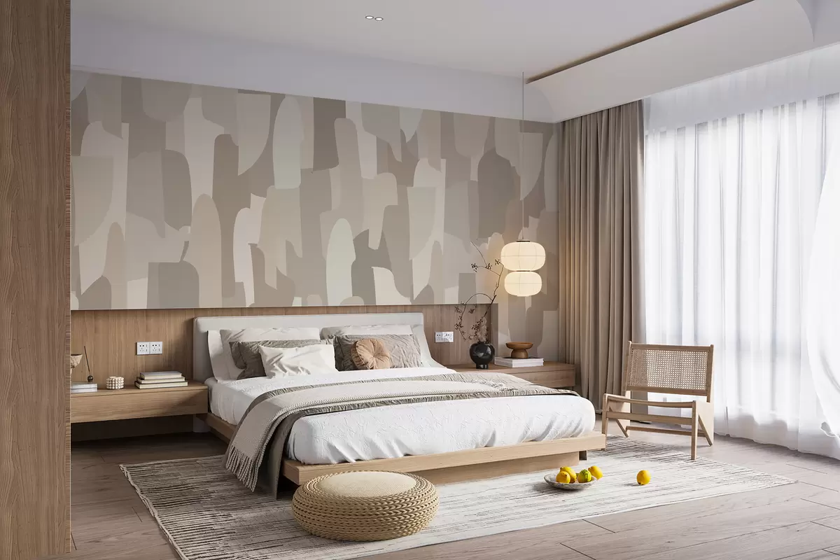 Zidne murale apstraktne moderne umjetničke tapete u bež nijansama imitacija obojenih komada, za moderan dizajn interijera br. w00987