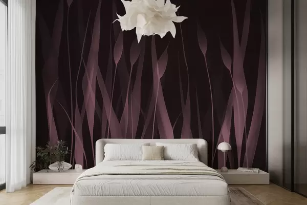 Zidne murale Nježno ružičasto lišće na tamnoj pozadini br. w01019