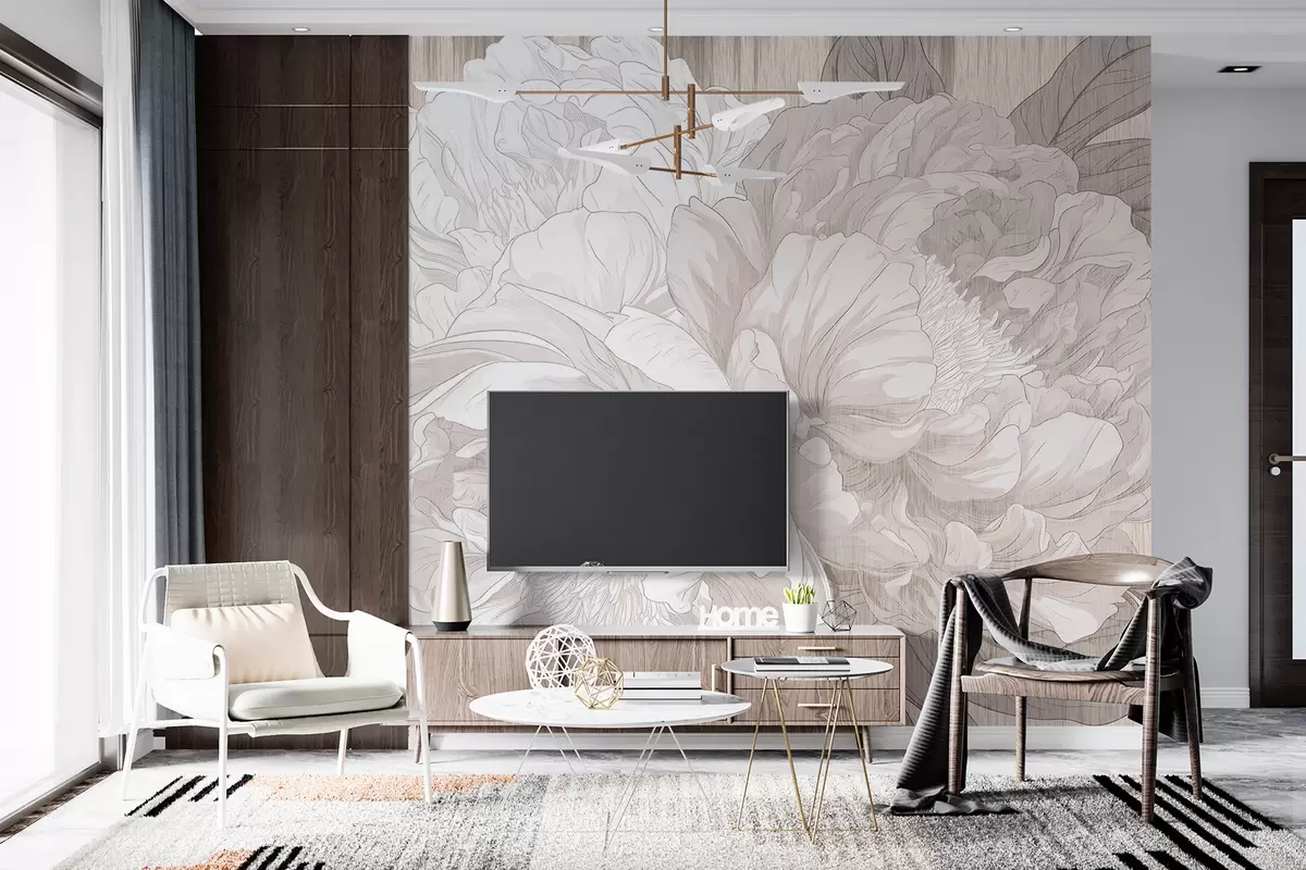 Zidne murale Teksturirani veliki cvjetovi božura u bež nijansama br. w01141