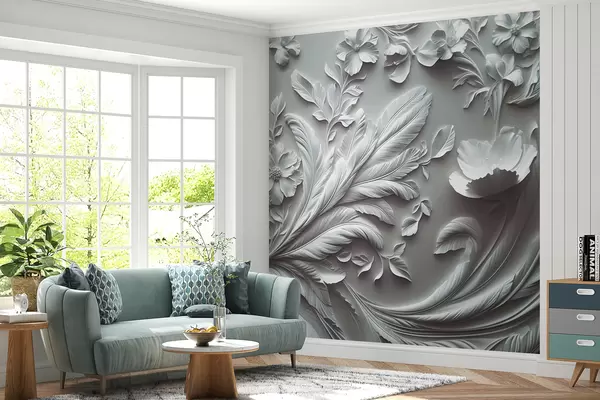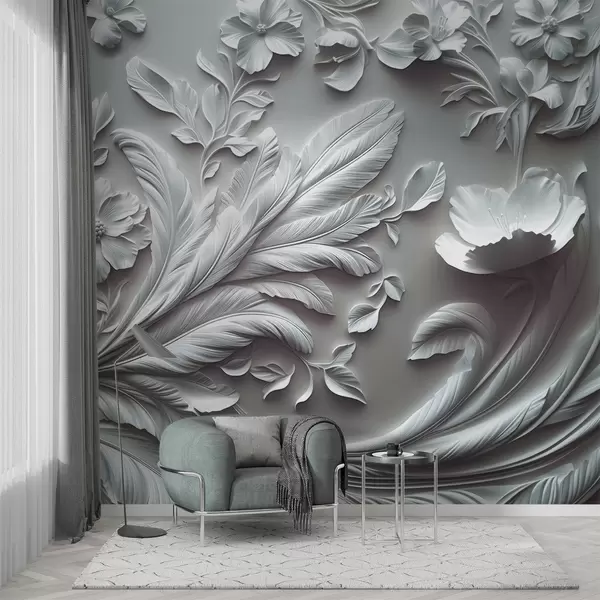 Zidne murale Izvrsni podignuti cvjetovi i listovi u sivim tonovima br. w01356v2