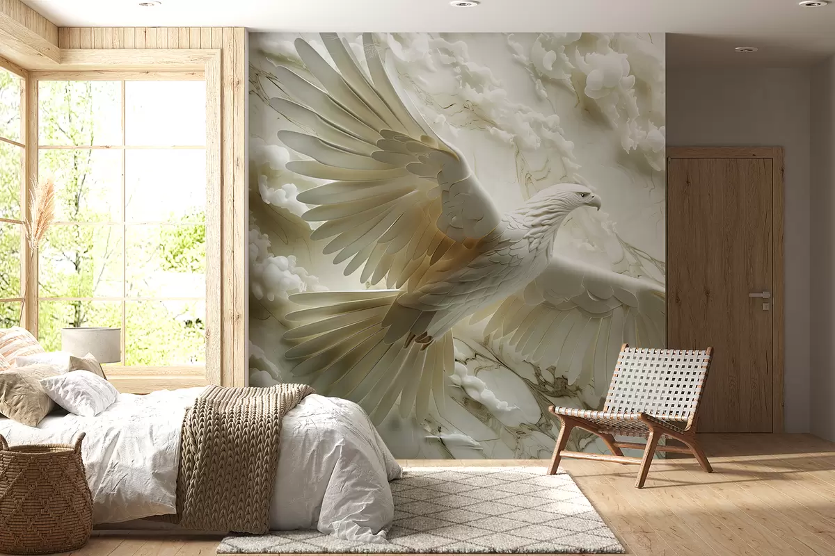 Zidne murale 3D bijeli orao na pozadini oblaka i mramora br. w01477
