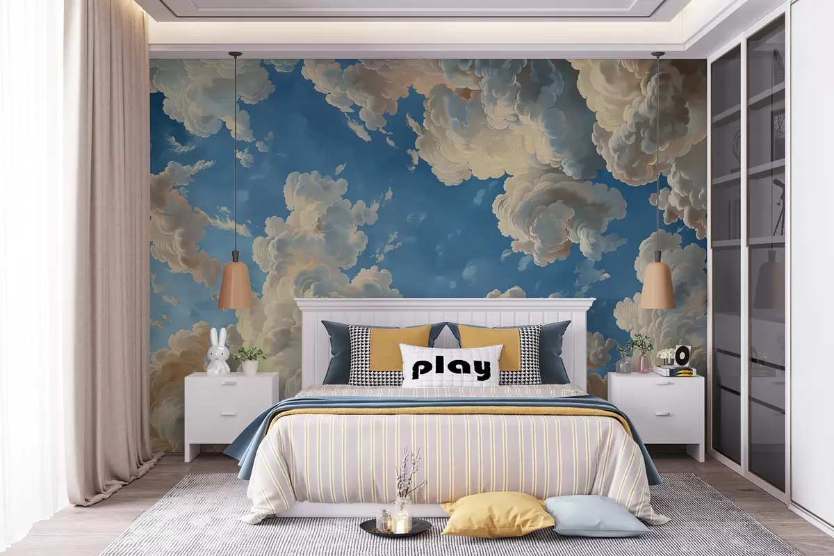 Zidne murale Oblaci u toplim kremastim, nježno breskvastim i blijedim nijansama na pozadini dubokog, svijetlo plavog neba. br. w01583