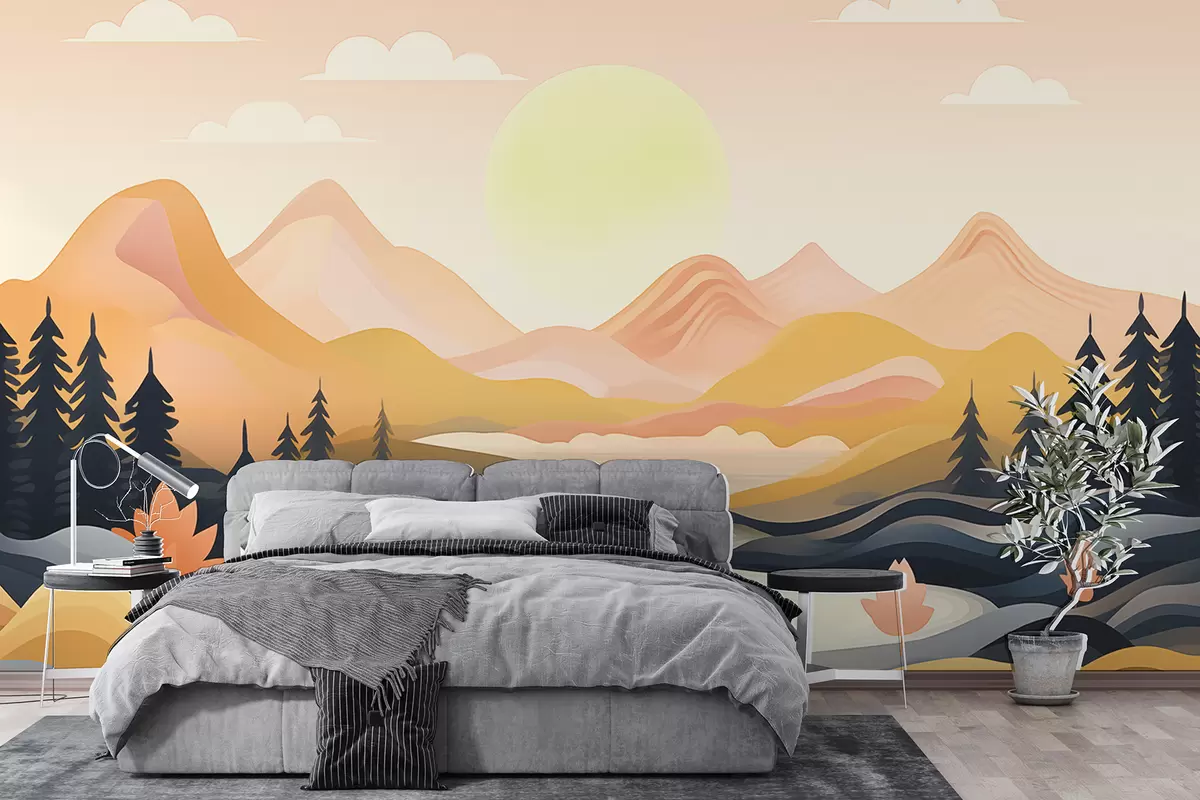 Zidne murale Svitanje prohladnog jesenskog jutra u planinama. br. w01657
