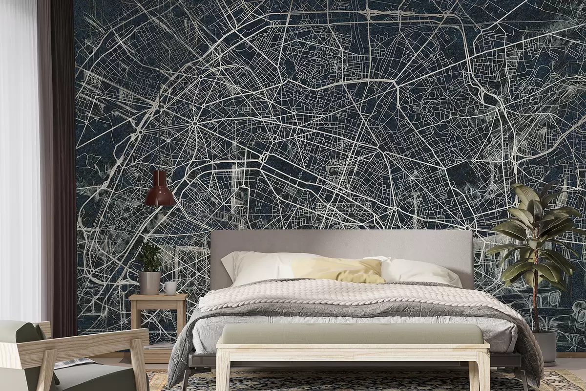 Zidne murale Plan grada Pariza, crtanje linija, arhitektura, Francuska, tamne boje br. w01697v1