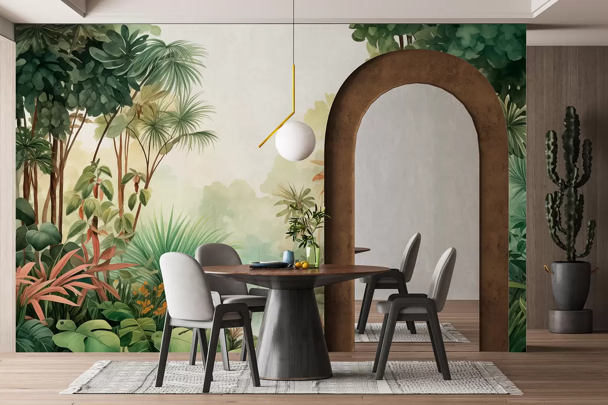 Zidne murale Akvarel šuma džungle, palme, jezero, zelenilo br. w01784