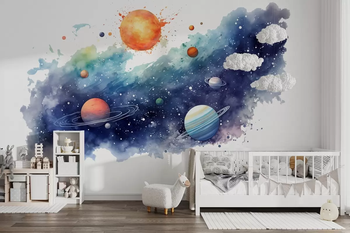 Zidne murale Akvarel prostor, planeti, sunce, zvijezde br. w01803