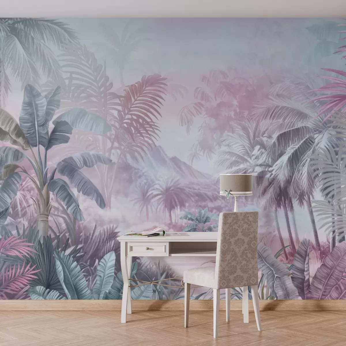 Zidne murale Prašuma u nježno plavim i ružičastim tonovima br. w01931v2