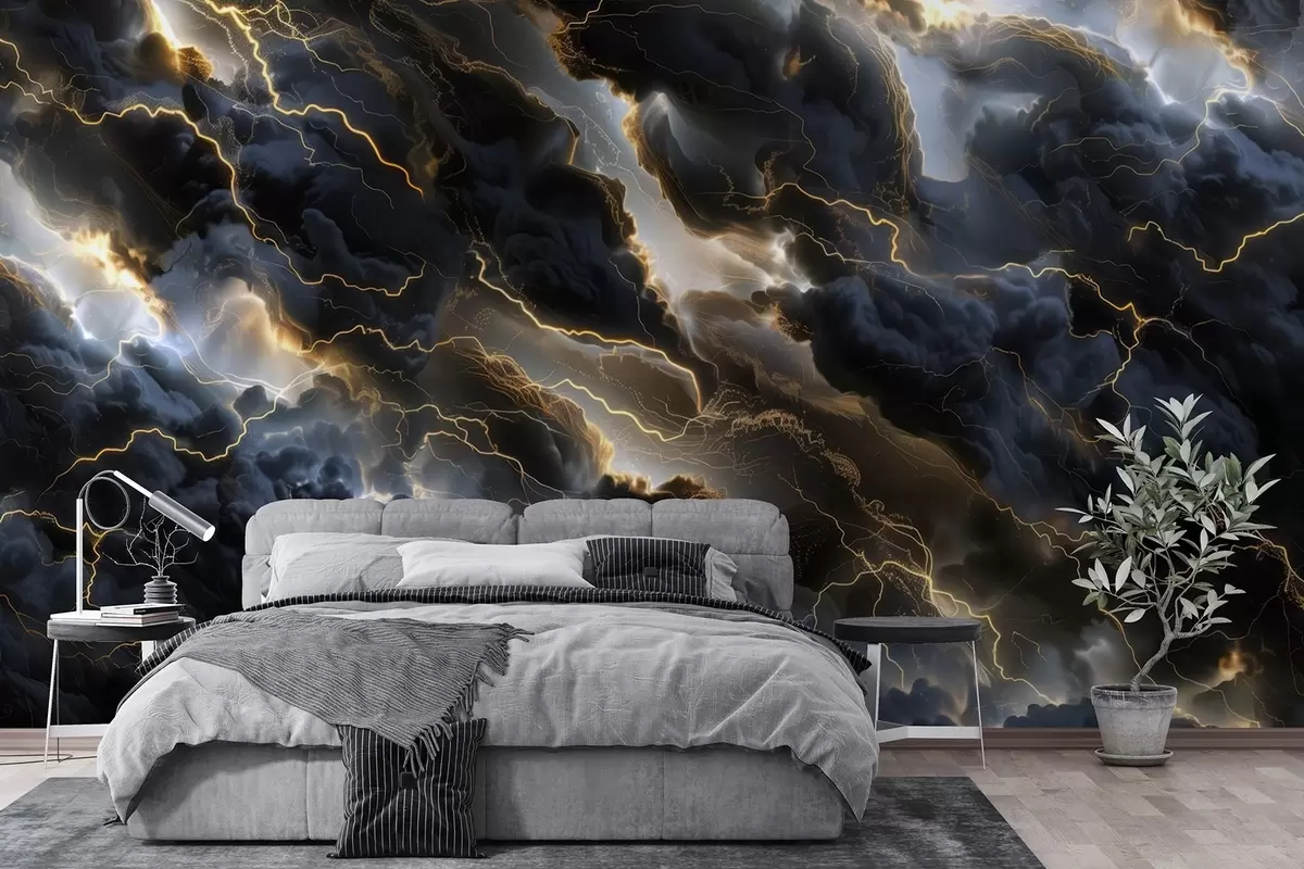 Zidne murale Crni oblaci s munjama koji izgledaju poput mramora br. w01936
