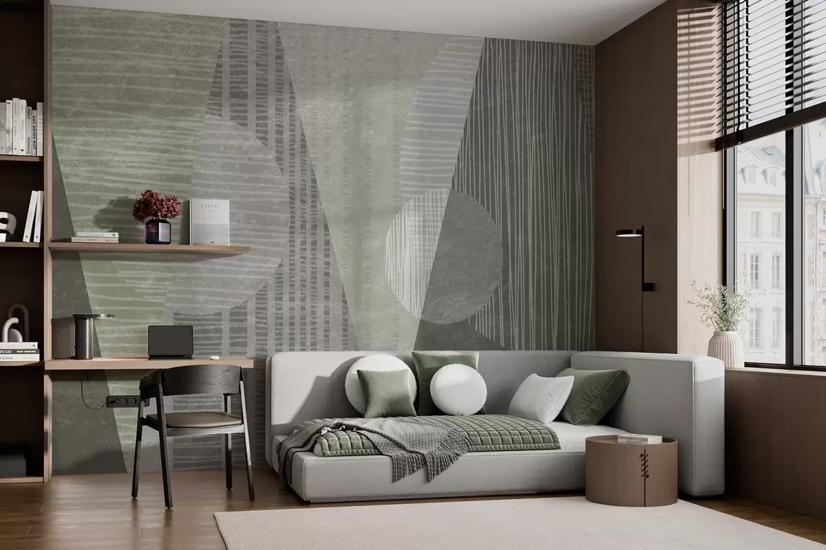 Zidne murale Moderna geometrija vintage stila u zelenim bojama br. w02003v2