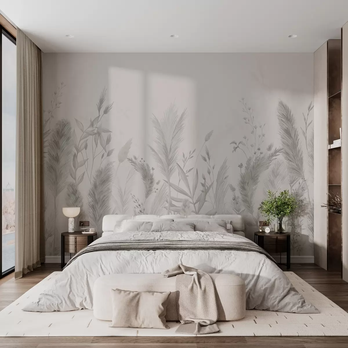 Zidne murale Visoke poljske trave i cvijeće u neutralnim bojama br. w02004