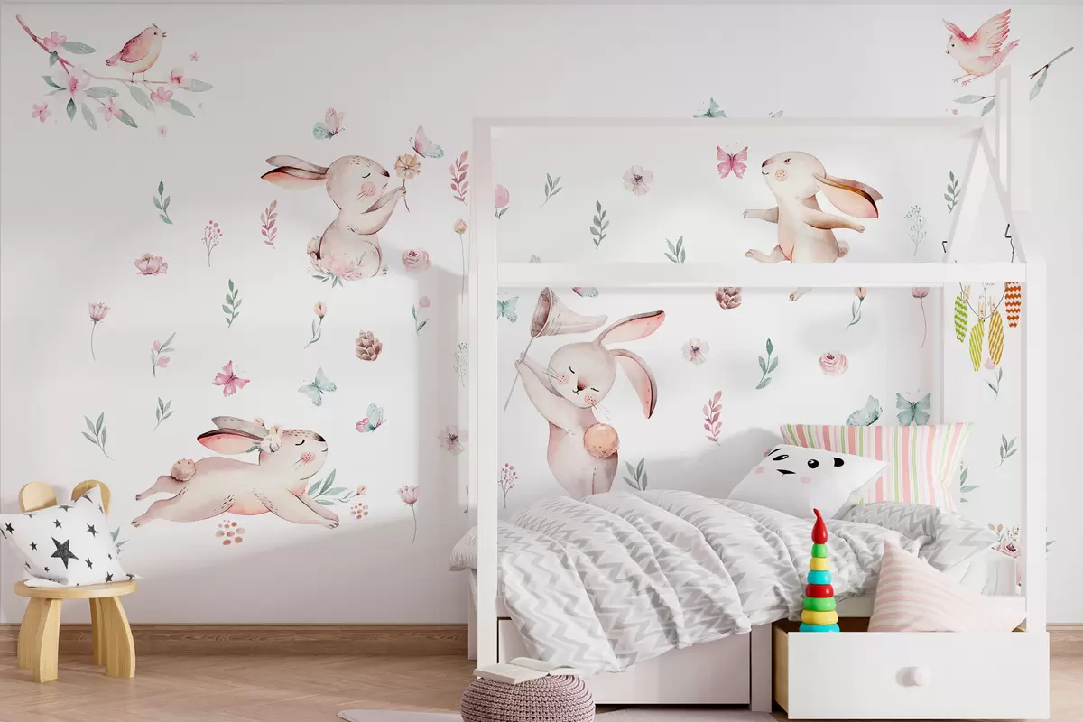 Zidne murale Zečići iz bajke u cvijeću br. w02025