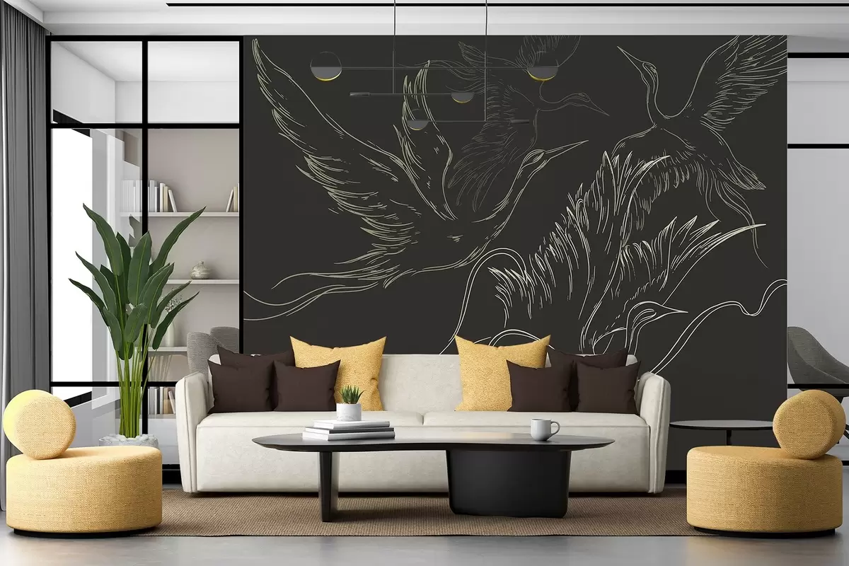 Zidne murale Ptice lete, minimalizam, crteži, priroda, tamna pozadina br. w02061v3