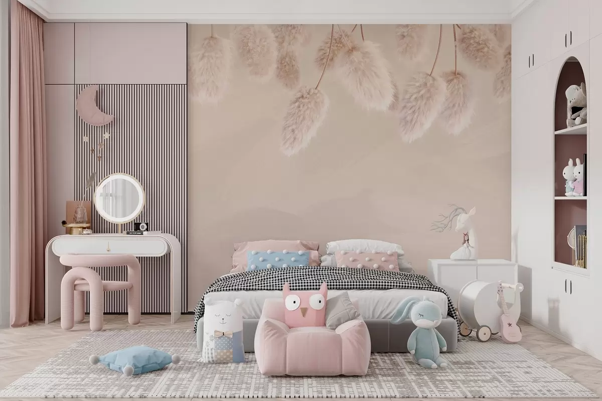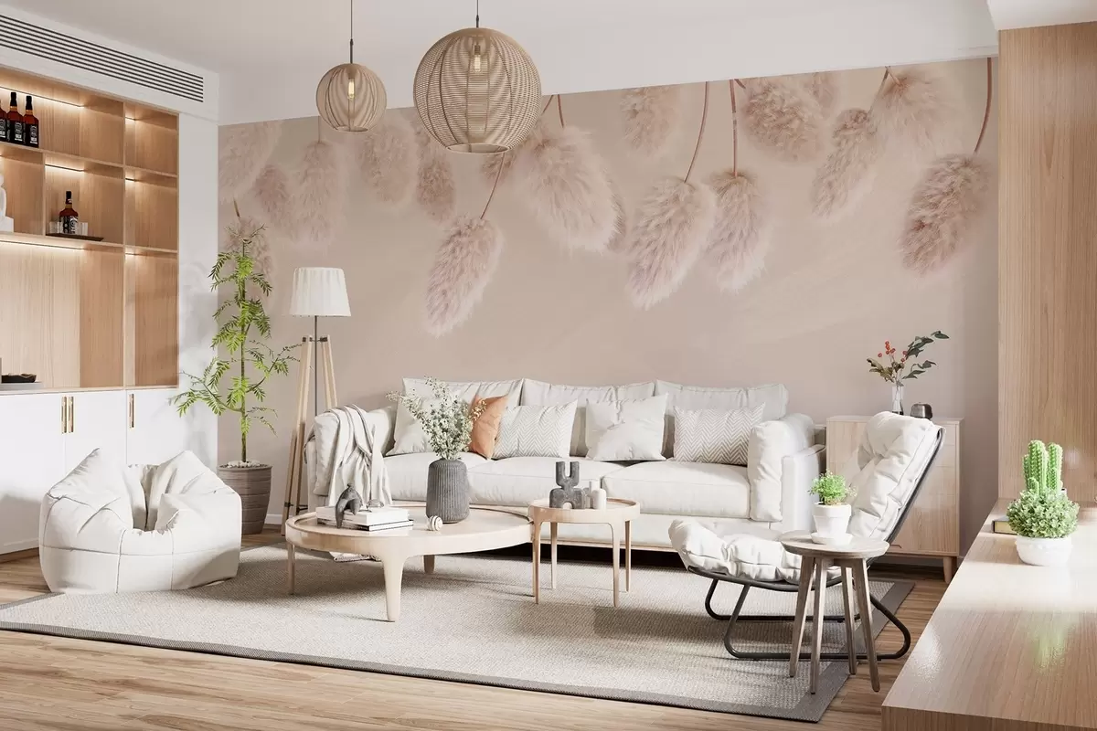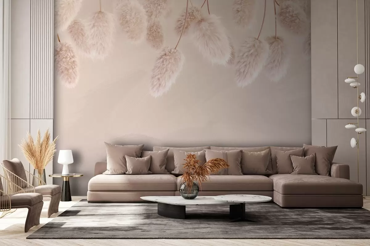 Zidne murale Nježni oblaci lagurusa na pozadini mekih ružičastih poteza br. w02071