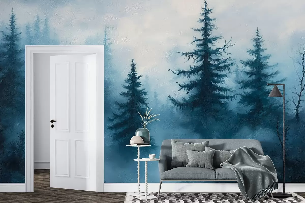 Zidne murale Tamno plava šuma, ulje na platnu, potezi kistom, priroda br. w02153