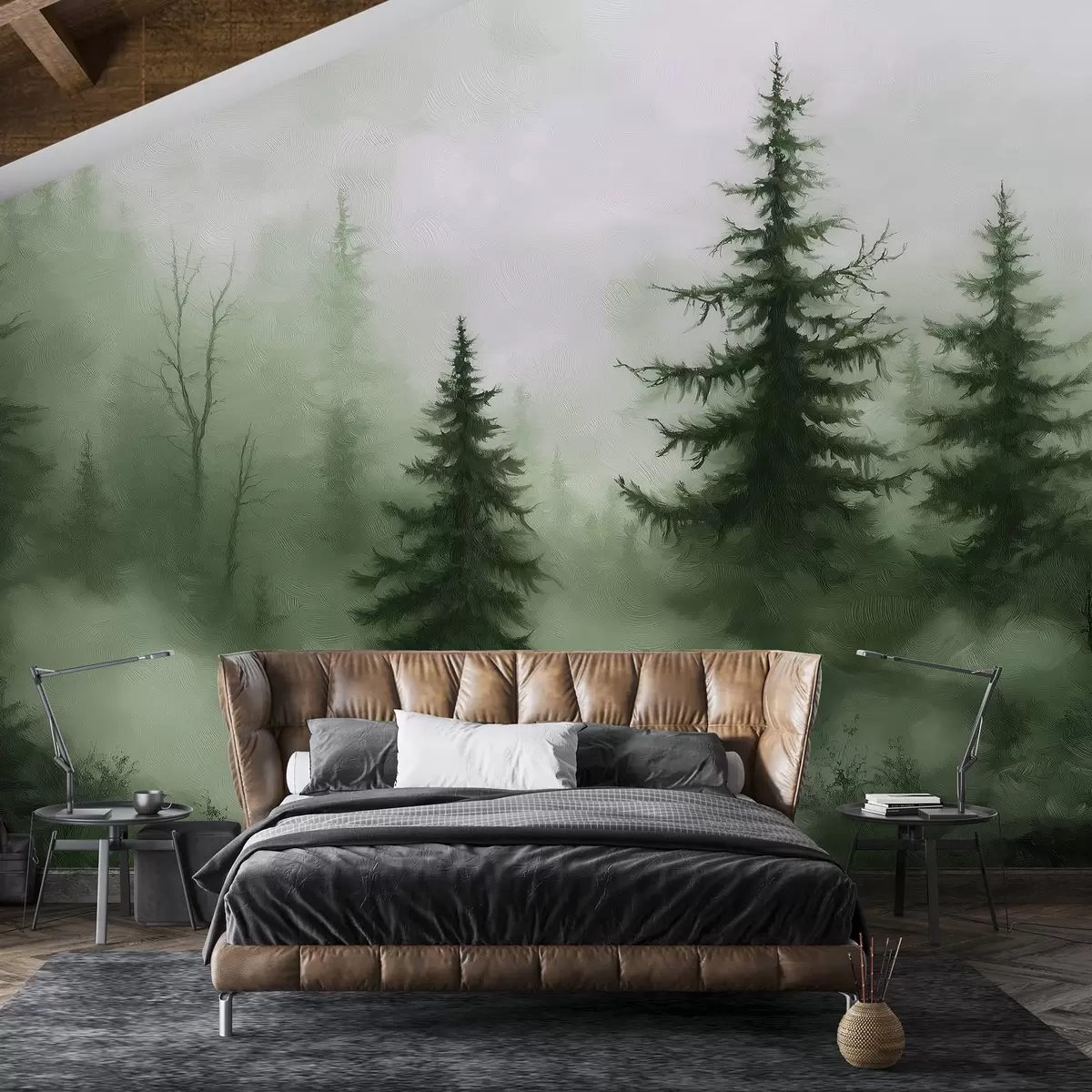 Zidne murale Tamno zelena šuma, ulje na platnu, potezi kistom, priroda br. w02153v1