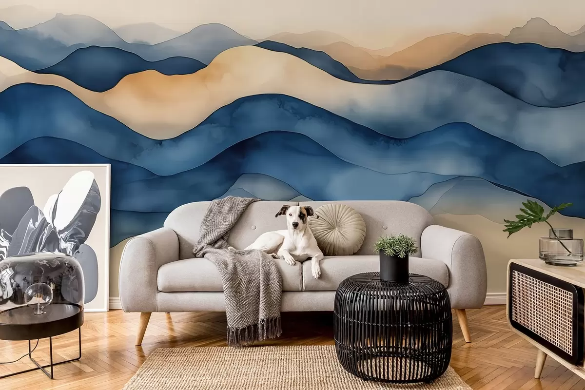 Zidne murale Apstraktni plavo-bež valovi koji podsjećaju na planine br. w02196